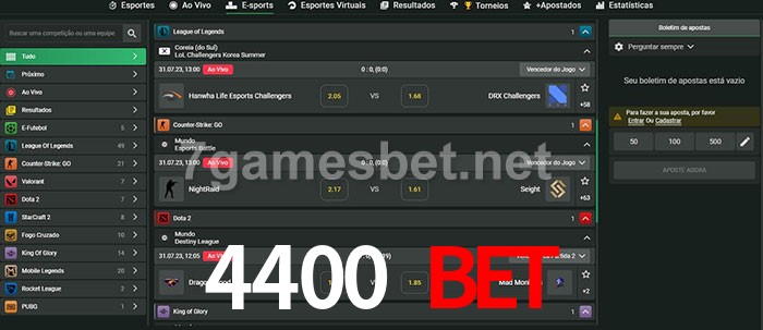 A aposta 4400 Bet oferece aos jogadores a experiência mais conveniente de apostas em eSports!